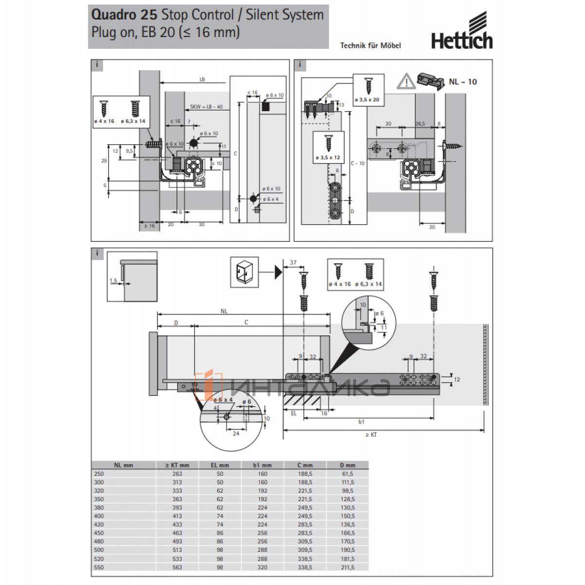 Направляющая HETTICH Quadro 20 HD, Silent System, частичное выдвижение, L300, EB 20, G25, под фиксаторы, левая, 9105619