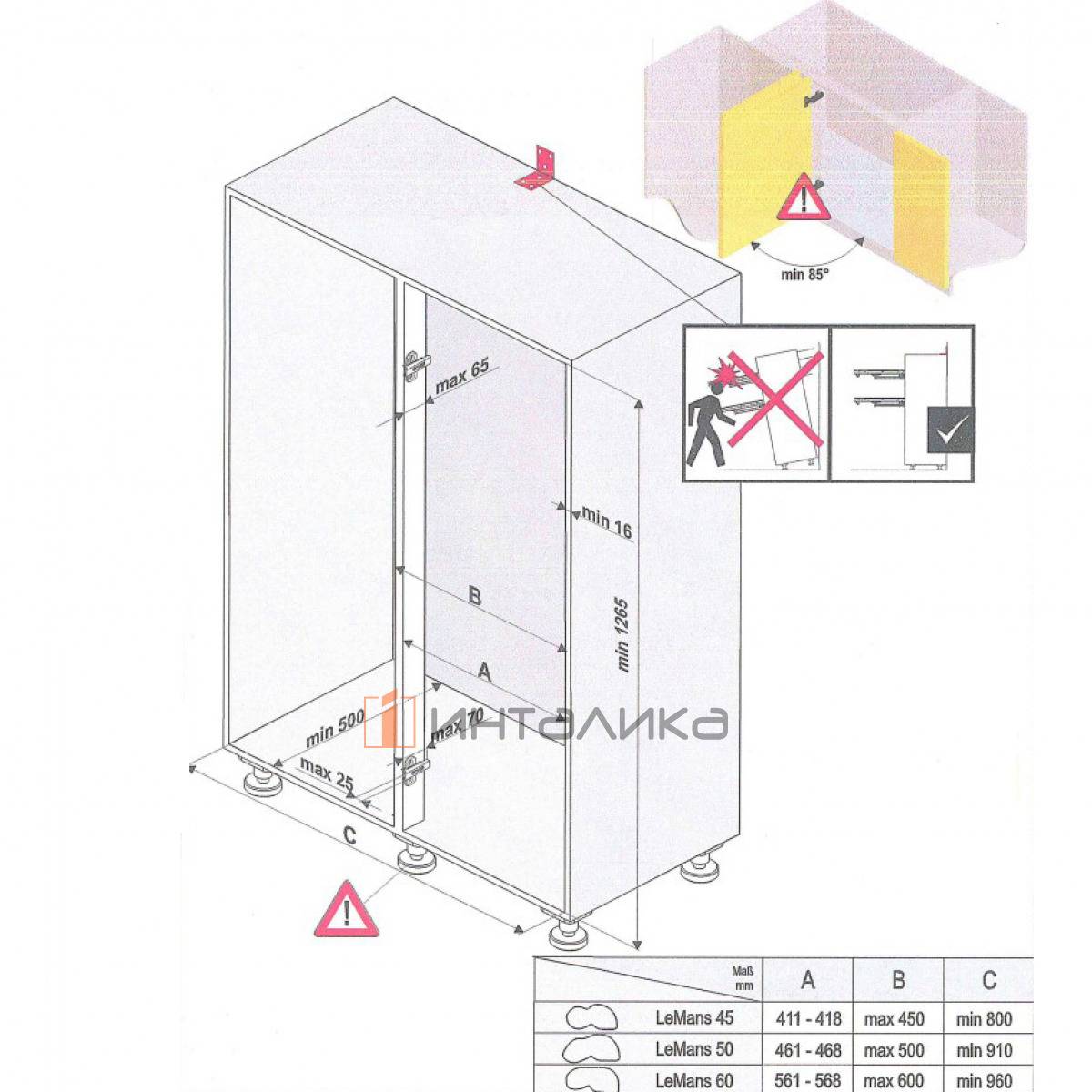 Поворотно-выдвижной механизм Le Mans применяется для установки в прямые угловые тумбы