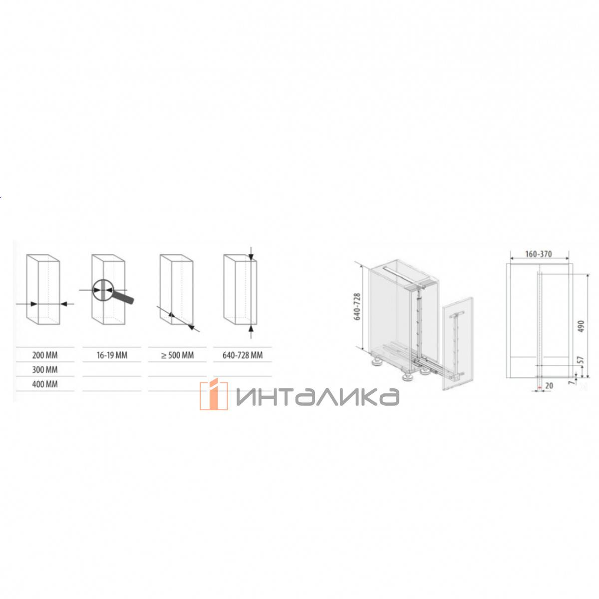 Минимальные внутренние габариты корпуса для установки системы Диспенса Юниор: ширина - 260 мм, высота - 640-728 мм, глубина - 490 мм