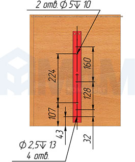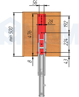 Корректор фасада, врезной, регулировка в чашке корректора, L-2175 мм