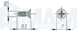 Винт с потайной головкой под крест, M4 Х 9.5, 2600 950 M4X9,5