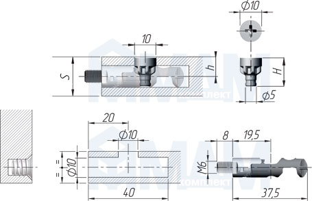 • позволяет компенсировать погрешности сверления отверстий, для установки винта 0,5/1,5 мм, для установки в боковую панель 1/1 мм,