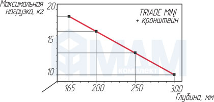 Соотношение между глубиной полки и нагрузкой на каждый менсолодержатель