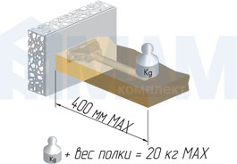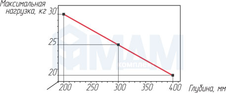 ОЧЕНЬ ВАЖНО! Нагрузка на менсолодержатель прямо пропорциональна глубине полки (см. график соотношения нагрузки и глубины полки).