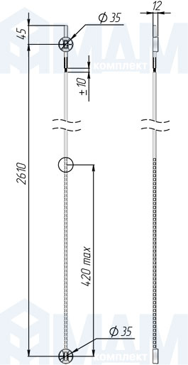 Корректор фасада, скрытый, врезной, регулировка сверху, L 2190-2610 мм, WS067.001.013