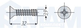 PS48 Саморез с потайной головкой под крест, 3,9x32 для крепления направляющих, PS48CN010264