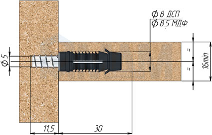 2. Сверление отверстия диаметром 5 мм под евровинт.