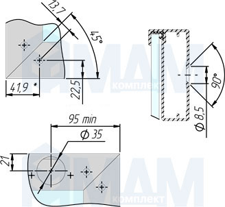INTEGRO Уголок для сборки широкого рамочного профиля, 4 отверстия
