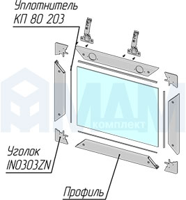 Используется с уголками IN303ZN, уплотнителем КП 80 203, петлями.