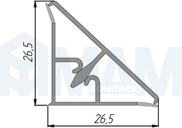 Плинтус алюминиевый треугольный L=3м, серебро, 67.300R.AL