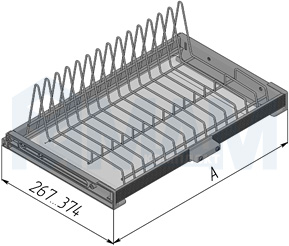 Комплектация: посудосушитель с рифленой рамкой и держателем задней панели, посудосушитель без рамки, поддон, демпфер