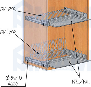 Используется с посудосушителями серий GV, SV, CM и поддонами VA, VP.