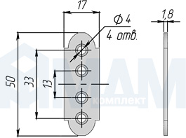 Пластина крепежная металлическая, 50*17 мм, ПК50