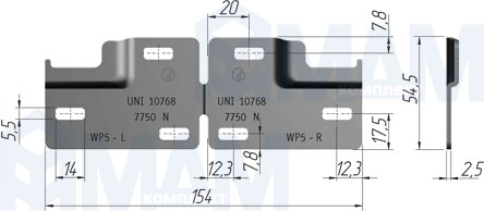 LIBRA WP5 Планка для навесов для коробов нижнего яруса, сталь 2,5 мм, используется с навесами Libra H1, H2, H6, CH, 6 34500 50 ZN