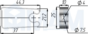 KRISTAL Полкодержатель для стеклянных полок толщиной 5-6 мм, под саморез, никель