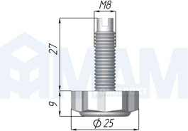 Ножка мебельная с прямым шлицем черная, М8 Х 27, PI14