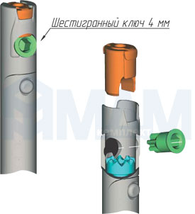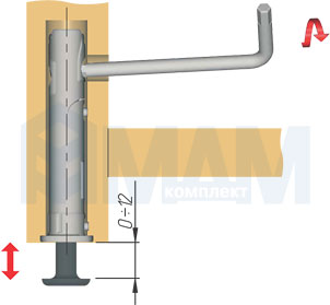 • регулировка по высоте (до 12 мм) осуществляется под углом шестигранным ключом через небольшое отверстие с внутренней стороны боковины,
