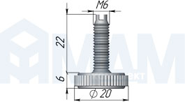 Ножка мебельная черная, М6 Х 20, PI10 M6 X 20