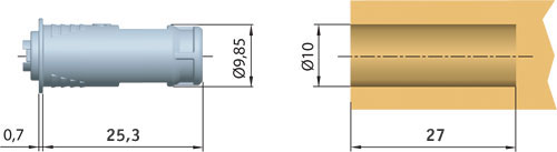 • Примечание: устанавливается в отверстие диаметром 10 мм
