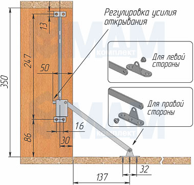 Используется с петлями KIMANA, RD14 и стандартными петлями.