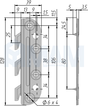 Примечание: на боковых элементах стяжки имеются наметочные шипы