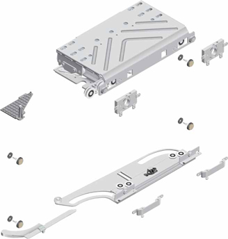 Комплектация: верхний ролик, верхний стопор, верхнее крепление для фасада 2 шт., нижний ролик, нижний стопор, нижнее крепление для фасадов 2 шт., угловой демпфер 4 шт.