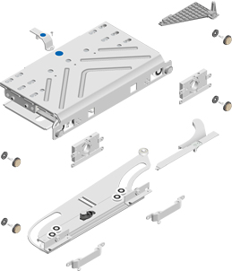 Комплектация: верхний ролик, верхний стопор, верхнее крепление для фасада 2 шт., нижний ролик, нижний стопор, нижнее крепление для фасадов 2 шт., угловой демпфер 4 шт.