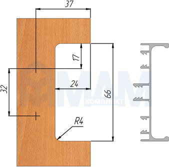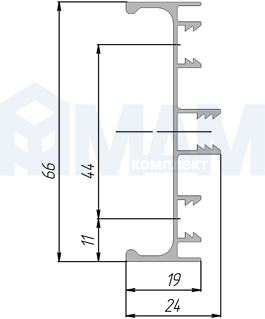 GOLINE Универсальная профиль-ручка без демпферов для среднего ящика, алюминий матовый, L-4180, GL2.549A.4180.7F