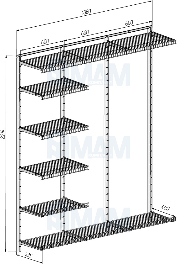 Home Space, гардероб ширина 1860мм, глубина 435 мм, 3 проема по 600 мм, HSK1860x435MT1