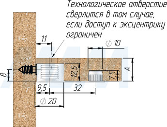 Вертикальная установка эксцентрика без бортика Горизонтальная установка эксцентрика без бортика