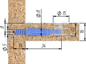 Эксцентрик усиленный в пластиковом корпусе 16 мм, дуб