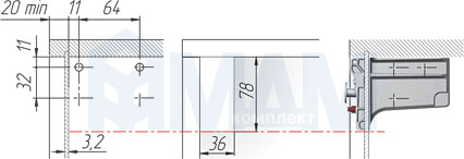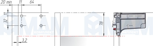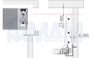 • возможность установки навеса в короб с выдвижными ящиками без дополнительной фрезеровки боковины короба,