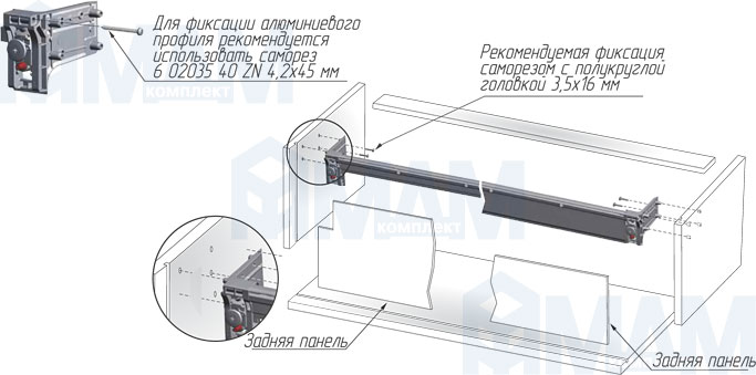 • возможность дополнительной фиксации к стене через алюминиевый профиль в широких коробах с выдвижными ящиками,