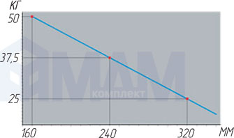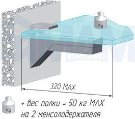 Максимальная нагрузка в зависимости от глубины полки Крепление к стене