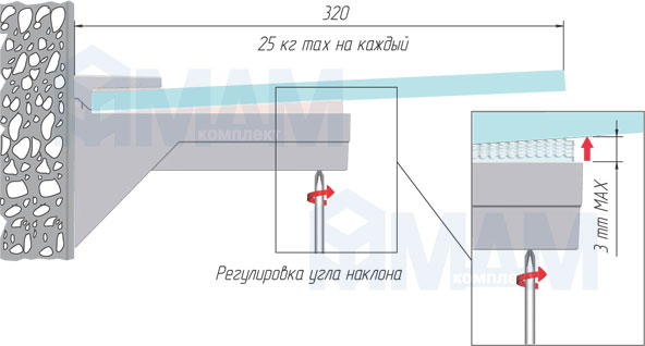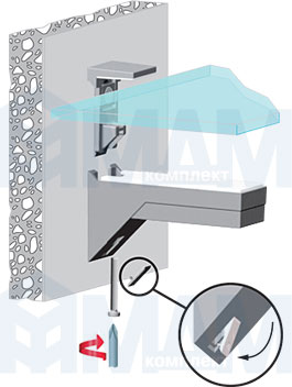 • менсолодержатели с возможностью регулировки угла наклона полки, что позволяет компенсировать неровности стены,