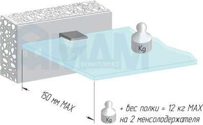• нагрузка 12 кг на 2 менсолодержателя при глубине полки 150 мм,